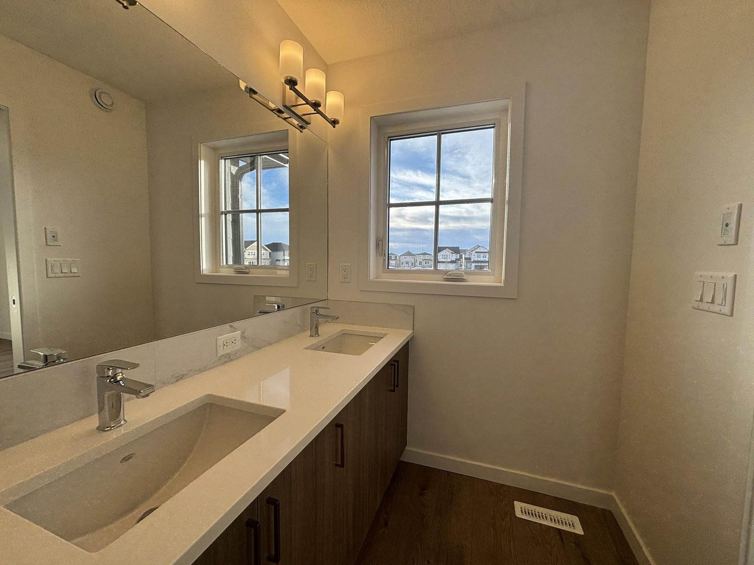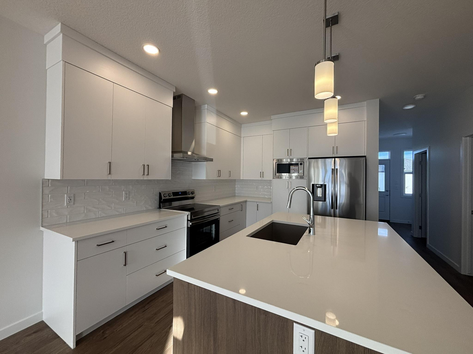 Welcome to Your Dream Home in Calgary's finest LAKE COMMUNITY – Where Luxury Meets Practical Living! Step into this brand new, never lived in masterpiece built by EXCEL HOMES – the BERKLEY model offering 1880 sf of contemporary design and exceptional functionality. The open-concept floor plan seamlessly connects the living room w/big windows & electric fireplace, central dining area, and showstopper kitchen – the true heart of the home. Cook like a pro in your chef-inspired kitchen that boasts loads of Eng stone countertops and large island. An elegant black metal railing leads upstairs. Here you'll find three spacious bedrooms including a stunning primary suite with a walk-in closet and private ensuite w/dual sinks. A vaulted bonus room is centrally positioned to separate the 2 secondary bedrooms from the primary suite & vaulted ceilings adds an elevated family retreat. The convenient upper-level laundry room makes day-to-day living easier. Move in, unpack, and start living your best life in Mahogany!!!