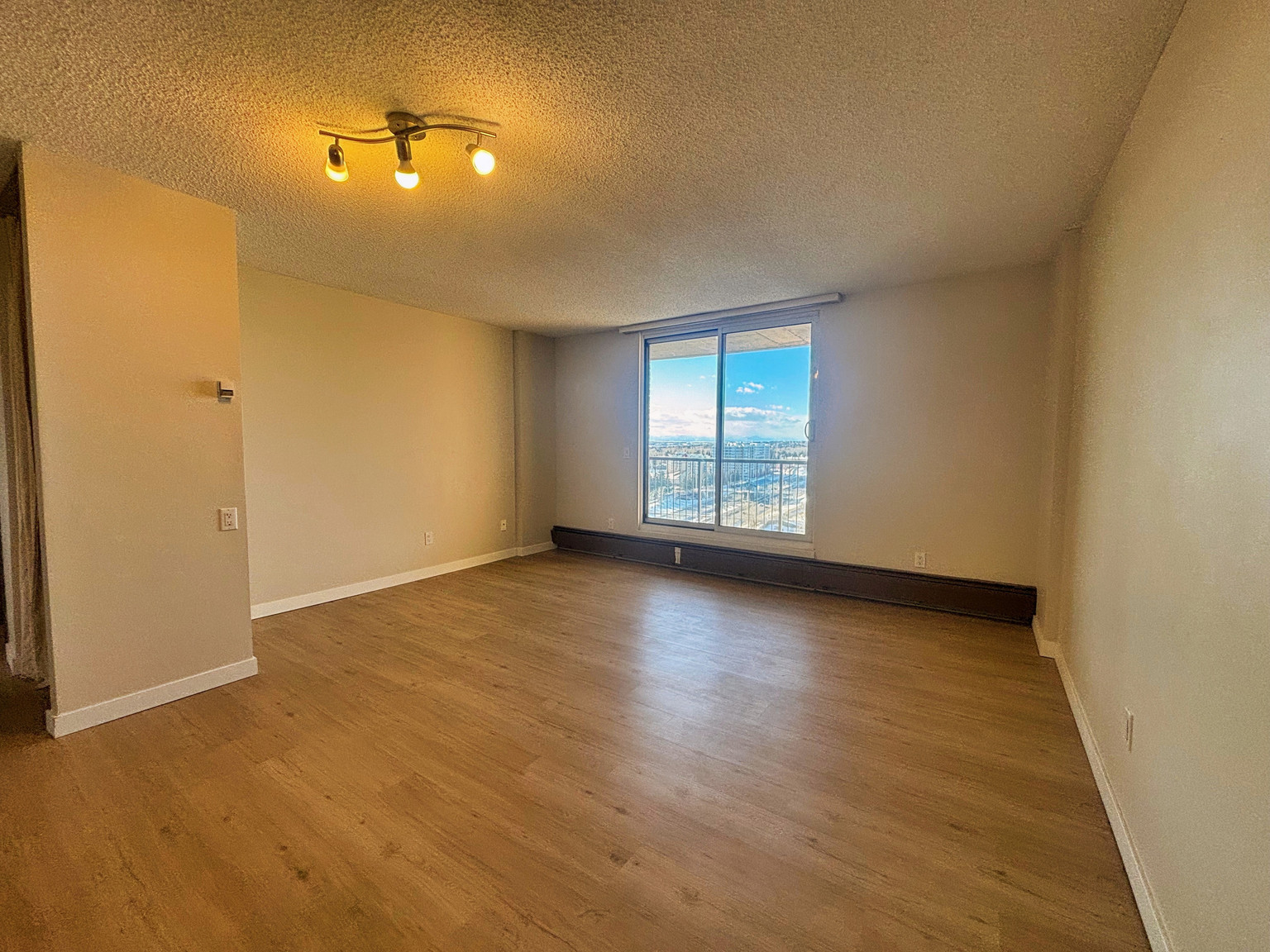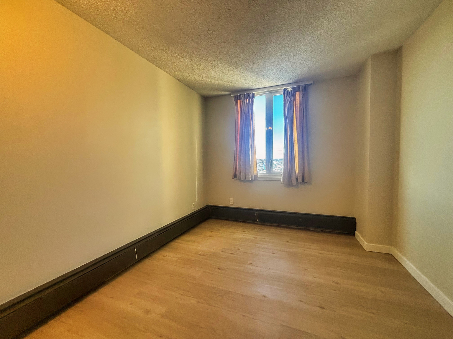 2 Bed (1 bedroom is smaller and may be more suitable for an office) | 1 Full bath | Large balcony | High-floor unit! | 1 Outdoor parking stall with plenty of (paid) visitor parking