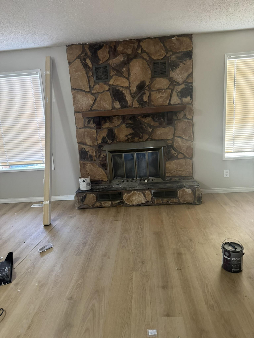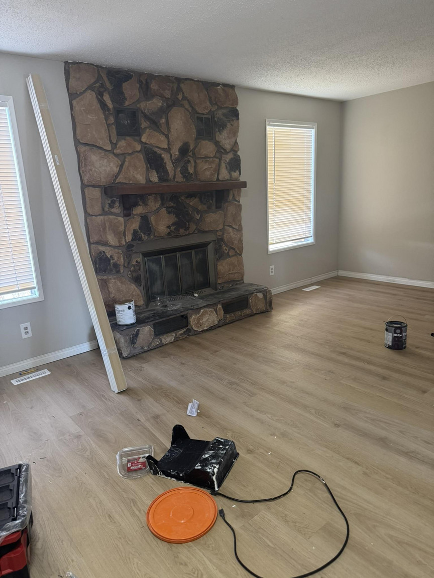 Excellent sized living room including wood burning fireplace. Tons of storage in the basement.