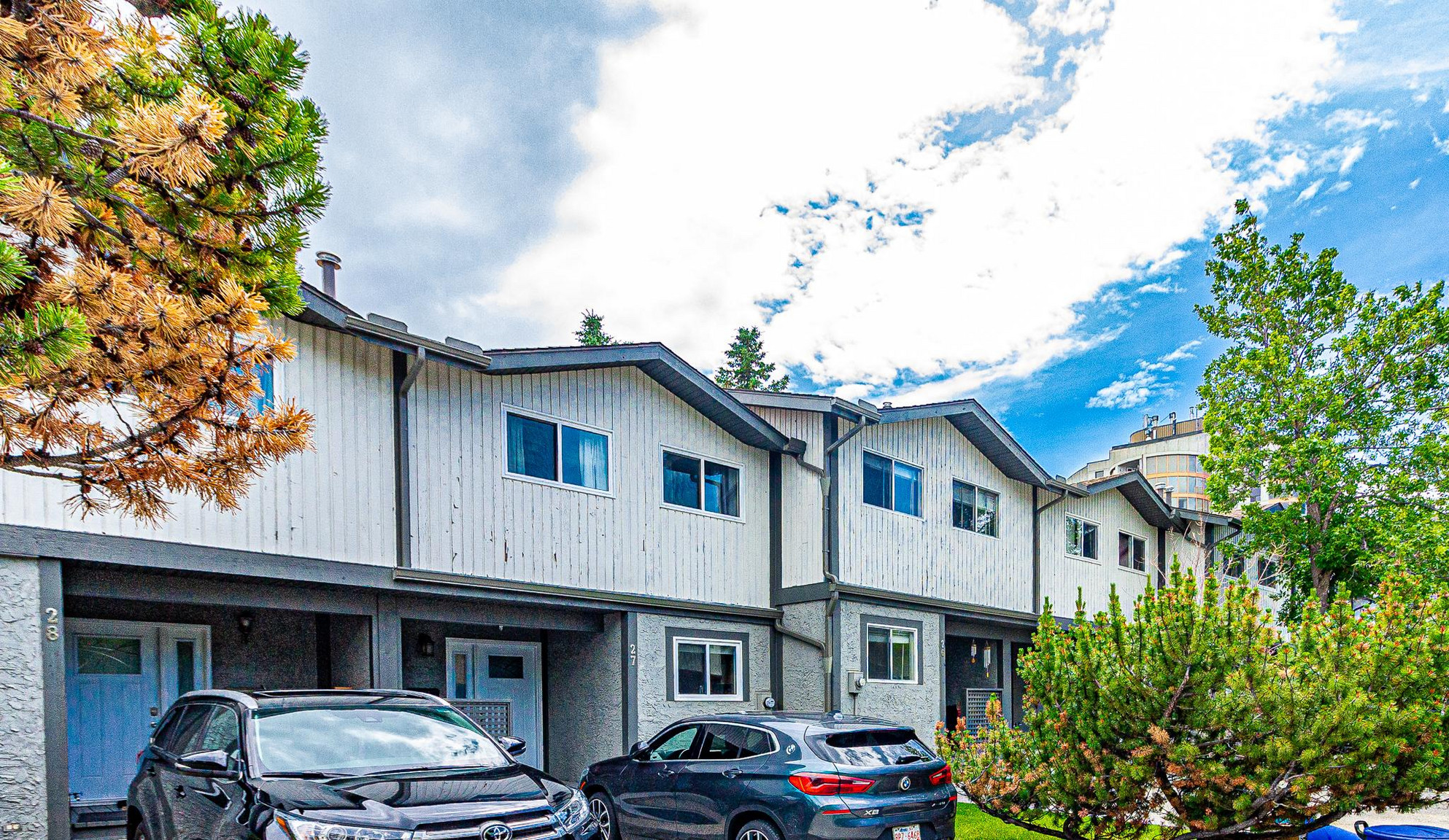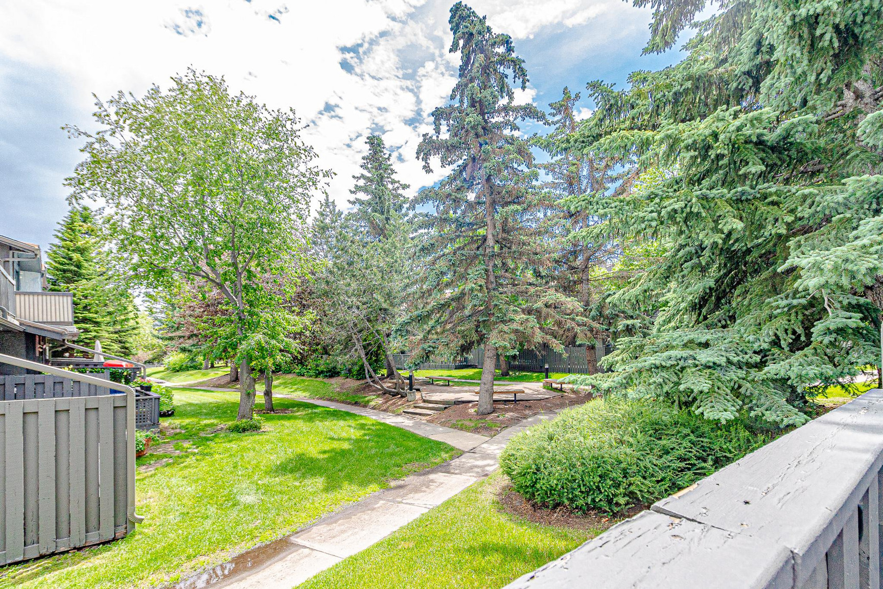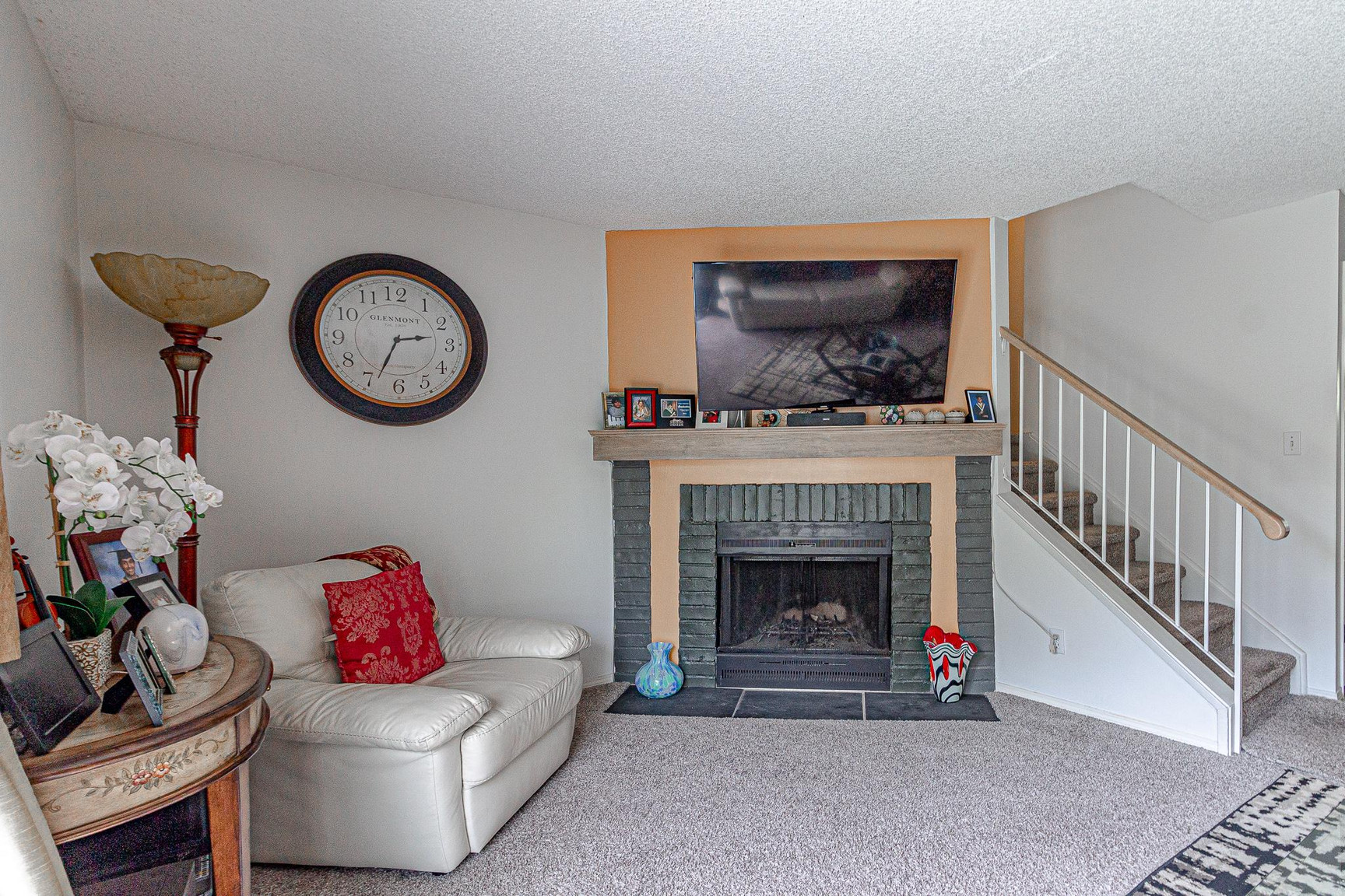 #27 welcomes you with a generous entryway and double closet! Ample dining room is adjacent to the efficient kitchen featuring Dishwasher, plenty of cabinet space, and stainless steel appliance package! Living room features fireplace and access to the large patio surrounded by mature trees! Half bath on this level for extra convenience!